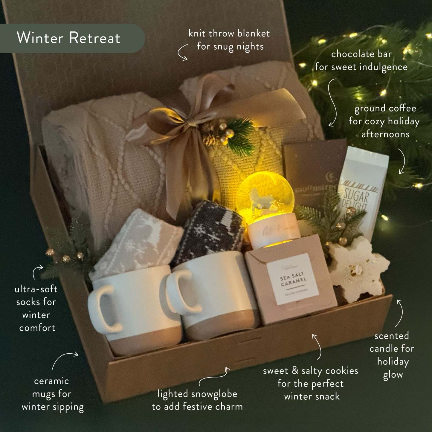 Winter Retreat Gift Box | Cozy Blanket, Mugs & Gourmet Holiday Treats