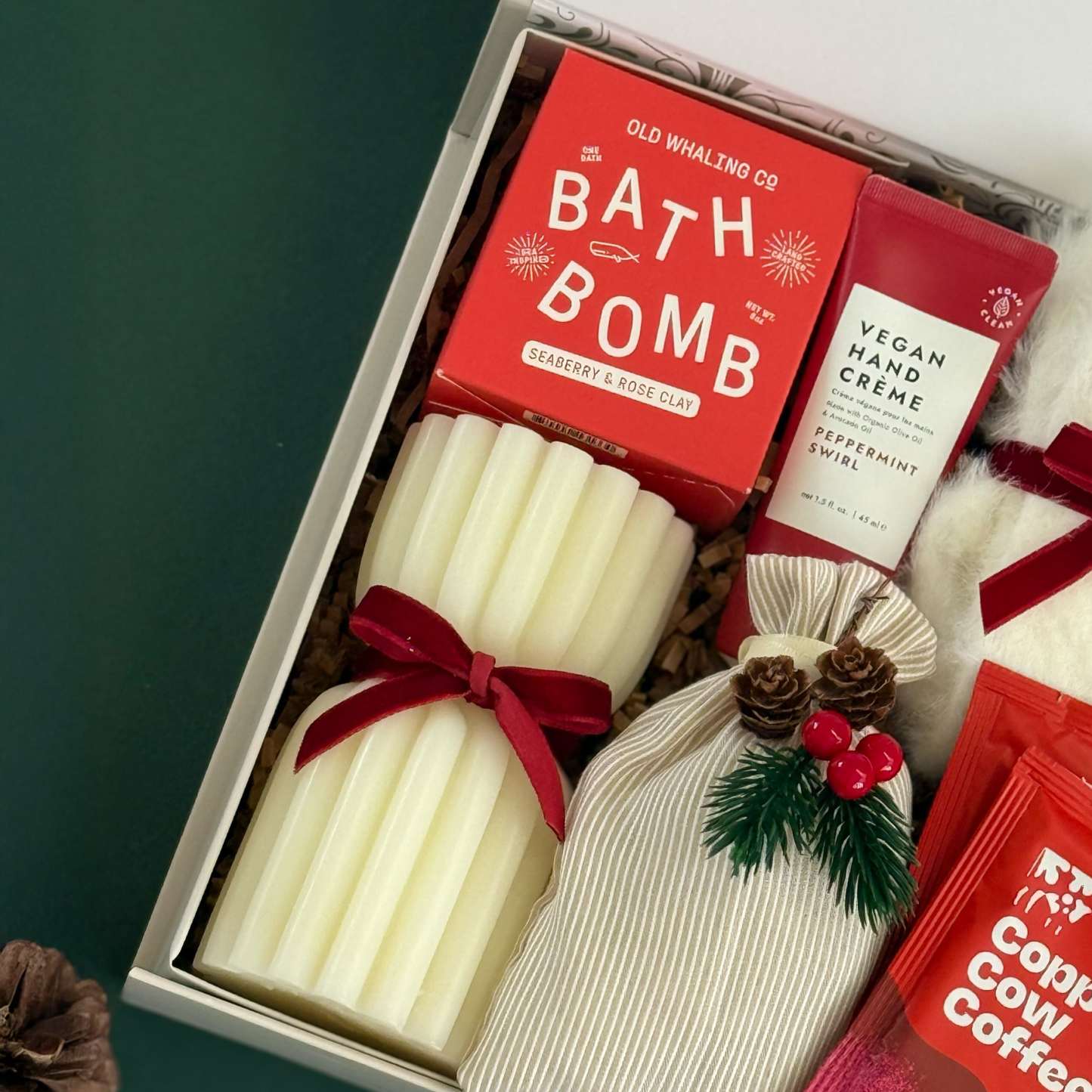 Winter Self-Care Gift Box for Women | Festive Gift Set with Coffee, Candle & Holiday Comforts