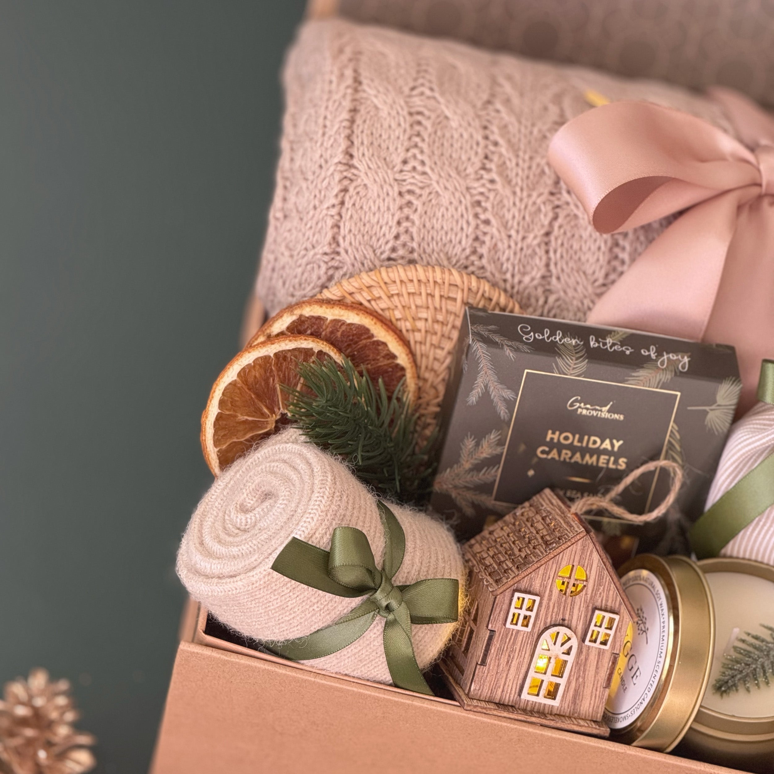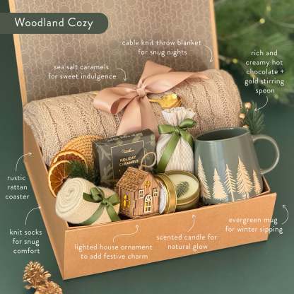 Woodland Cozy Gift Box | Knit Blanket, Evergreen Mug & Holiday Comforts